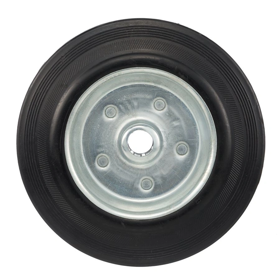Колесо под ось 20мм. 4000-200, диаметр 200мм., грузоподъемность 185кг., резина, металл. Колесо из черной литой резины. Центр из стального оцинкованного обода из штампованной стали. В оси колес роликовый подшипник. Колеса из черной резины, центр из двух гальванизированных дисков из штампованной стали. Роликовый (игольчатый) подшипник расположен в углублении, выдавленном под прессом, и содержит цилиндрические ролики подшипника. Возможно применение на относительно грубых полах складов, заводов, производственных и строительных площадках. Данные колеса можно использовать на неровных поверхностях, во влажной окружающей среде и использовании вне помещения, не рекомендуется применять в среде с органическими растворителями, хлорированными веществами, гидрокарбонатами и минеральными маслами. Температура эксплуатации от -20 до +70С.