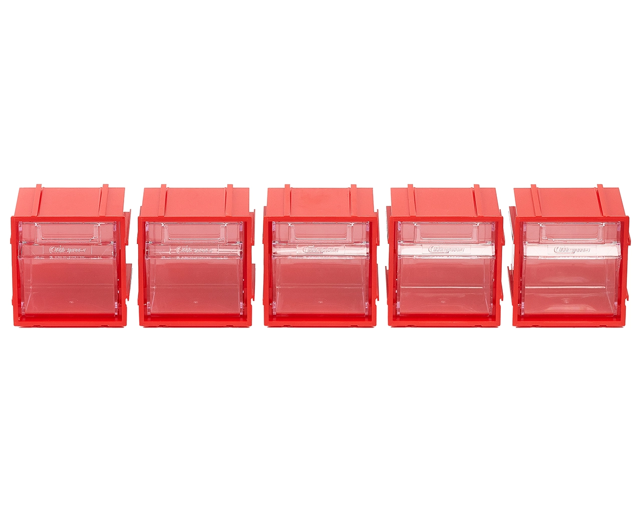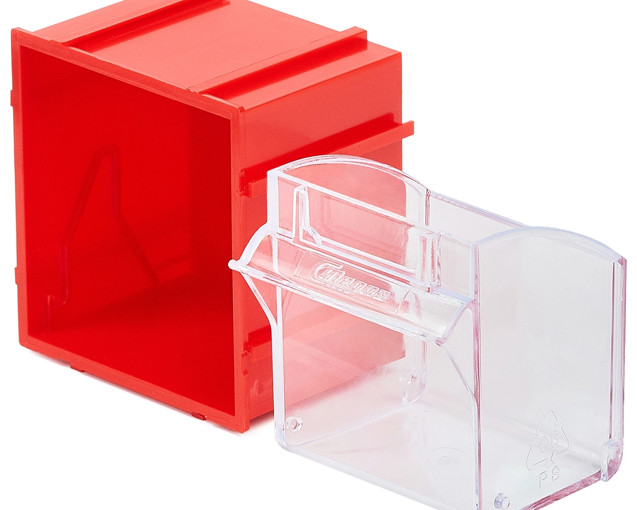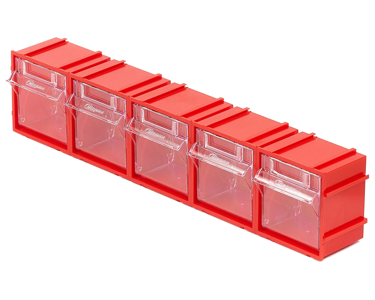 Комплект из 5-ти коробов откидных Стелла-техник F-70-1-К5 (70х60х76мм.) красный, прозрачный служит для хранения мелкоштучных предметов. Данные короба с помощью специальных пазов соединяются друг с другом по всем четырем сторонам, благодаря чему, пользователь может выстроить систему хранения по желаемым ему габаритным размерам. Внутренние ячейки короба не подвержены случайному опрокидыванию. Откидная ячейка обеспечивают быстрый доступ к необходимым предметам. В случае необходимости полного высыпания или наполнения внутренние ячейки легко извлекается. Полезный внутренний размер ячеек 56х43х47мм. Специальный пластик, из которого выполнен короб, выдерживает значительные нагрузки и обладает оптимальной эластичностью. На задней стенке короба присутствуют отверстия для крепления, через которые можно легко прикрепить к стене, как отдельно каждый, так и целый собранный набор из коробов, любого количества. Обзорность содержимого сквозь прозрачные внутренние ячейки, наличие отсека для информационных бирок, легкое извлечение внутреннего короба для опустошения и наполнения, все это является неоспоримым преимуществом откидных коробов серии F. Температура эксплуатации от -10 до + 70С.