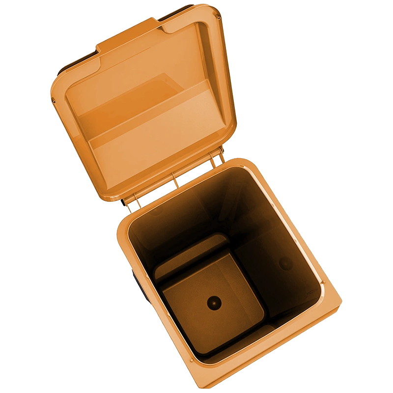 Контейнер 240л производится методом литья под высоким давлением из высококачественного полимерного сырья – ПЭНД (первичный полиэтилен низкого давления). Это позволяет эксплуатировать мусорный бак при температур от -40 до +50 градусов С, что очень актуально для российских климатических условий.