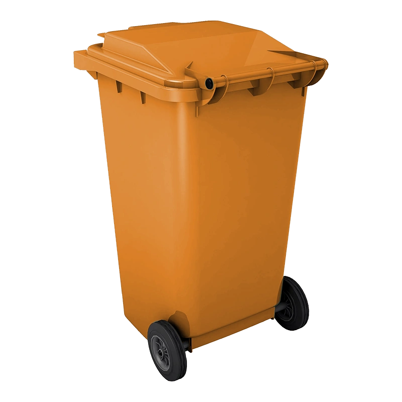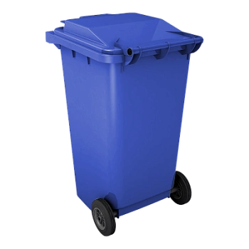 Бак для мусора 240л имеет крышку и два колеса, что облегчает обращение с ним и его передвижение. Он выпускается в четырех цветах (зеленом, желтом, синем и сером).