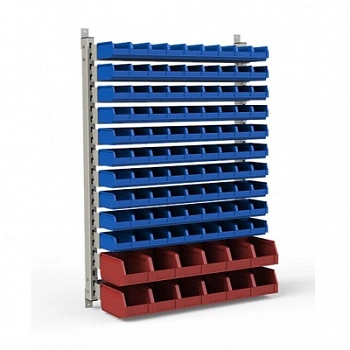 Стеллаж разработан специально для систематизации, хранения различных комплектующих, деталей, запчастей, крепежных и строительных материалов: болты, гайки, сверла, подшипники, метизы, фитинги, сантехника, зажимы, заклепки и т.д.
