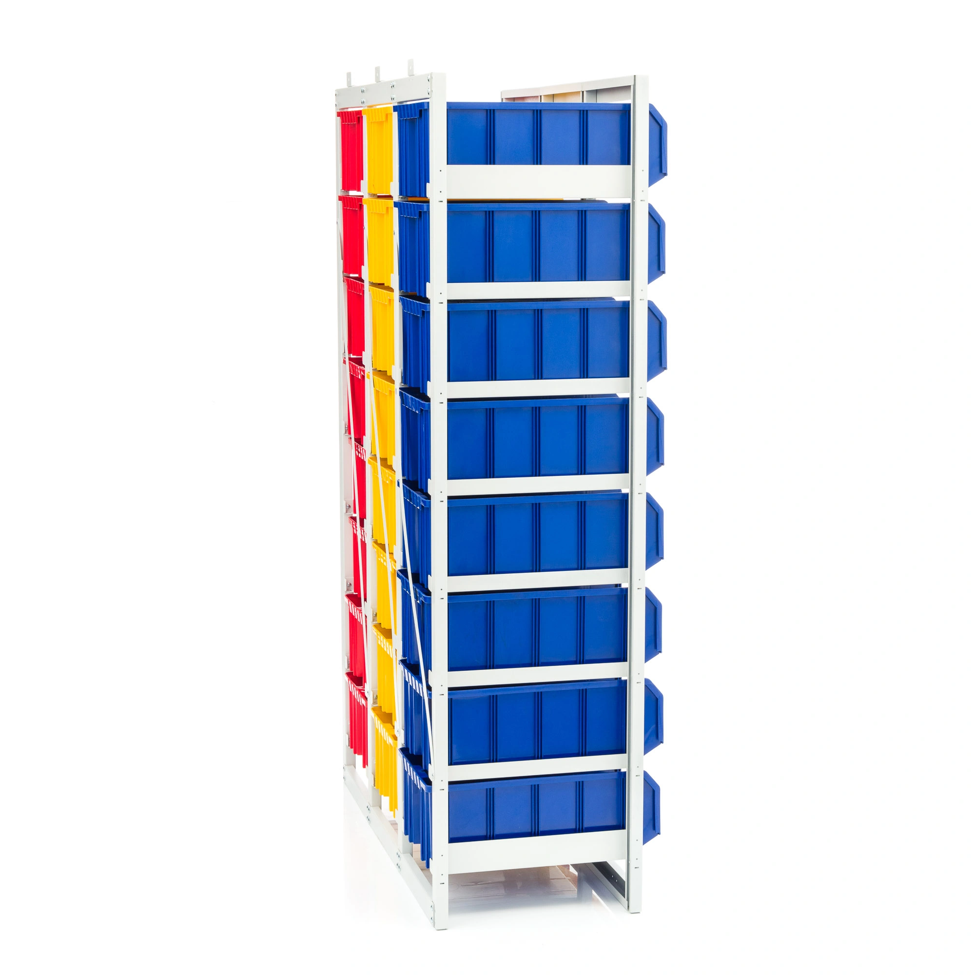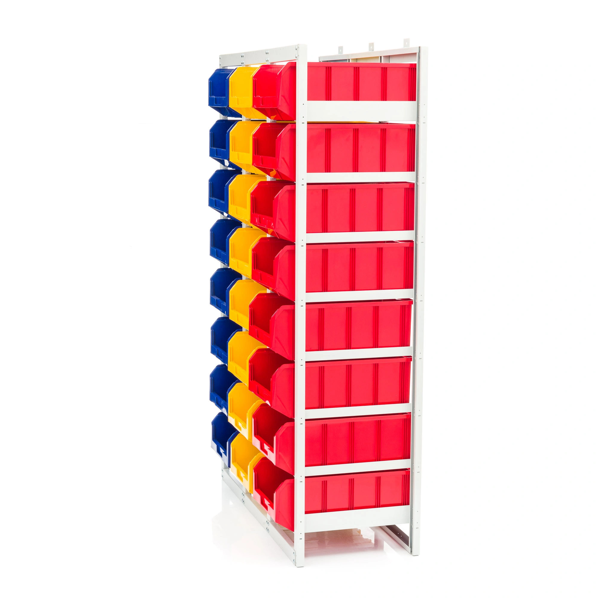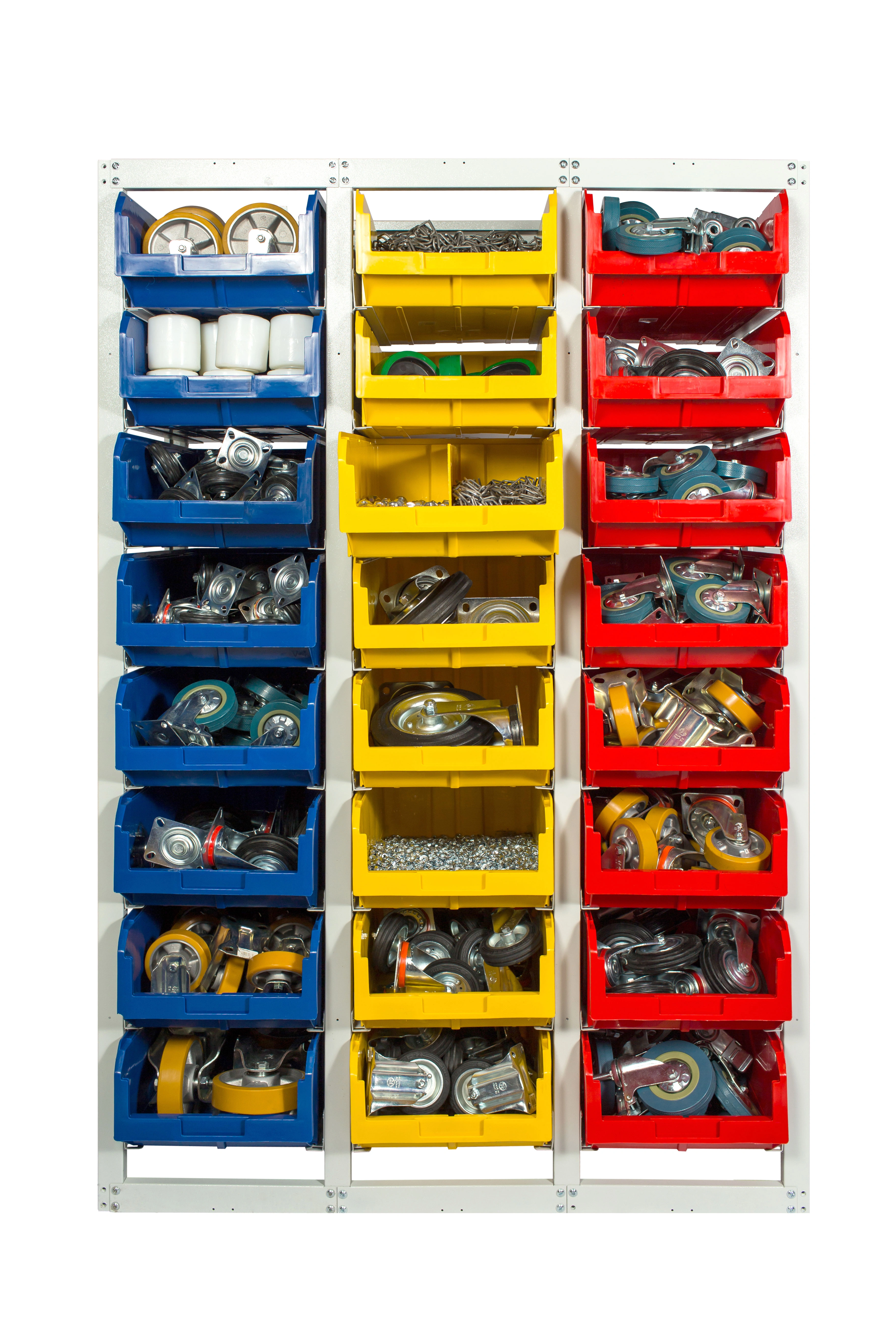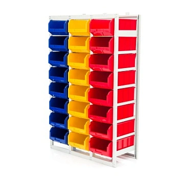 Стеллаж с направляющими стационарный CP-4 (1 основная секция + 2 дополнительные) имеет широкую область применения - он может использоваться в мастерских различного назначения, на складах, в торговых помещениях и в других местах, где необходимо складирование и систематизация различных деталей, инструментов и приспособлений. Стеллаж оснащен большим количеством вместительных ящиков модели V-4 - 24 штуки, открытого типа, что обеспечивает хороший визуальный обзор их содержимого. Каждый ящик находится в отдельной ячейке с направляющими, что позволяет легко, одним движением, доставать его из стеллажа и устанавливать на стеллаж. Комплектация: основная секция стеллажа разборного для ящиков V-4 - 8 ячеек; дополнительная секция стеллажа разборного для ящиков V-4 - 8 ячеек - 2 шт.; пластиковый ящик серии V-4 размером 502х305х184мм. - 24 шт. Преимущества: конструкция позволяет максимально эффективно организовать пространство для хранения различных мелкоштучных изделий, таких как крепеж, автозапчасти, сантехнические комплектующие и прочие небольшие предметы. Ящики открытого типа обеспечивают легкий и удобный доступ к содержимому. При необходимости, ящики дополнительно можно оснастить продольными разделителями или ограничителями. Разборная конструкция, при необходимости, позволяет наращивать дополнительные секции. Быстрая сборка. Не занимает много места. Для повышения безопасности, конструкция содержит в комплектации уголки крепления к полу или стене. Температура эксплуатации от 20 до +60С.