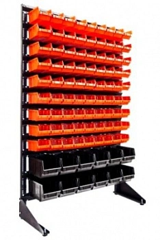 Стенд разработан специально для систематизации, хранения различных комплектующих, деталей, запчастей, крепежных и строительных материалов: болты, гайки, сверла, подшипники, метизы, фитинги, сантехника, зажимы, заклепки и т.д.