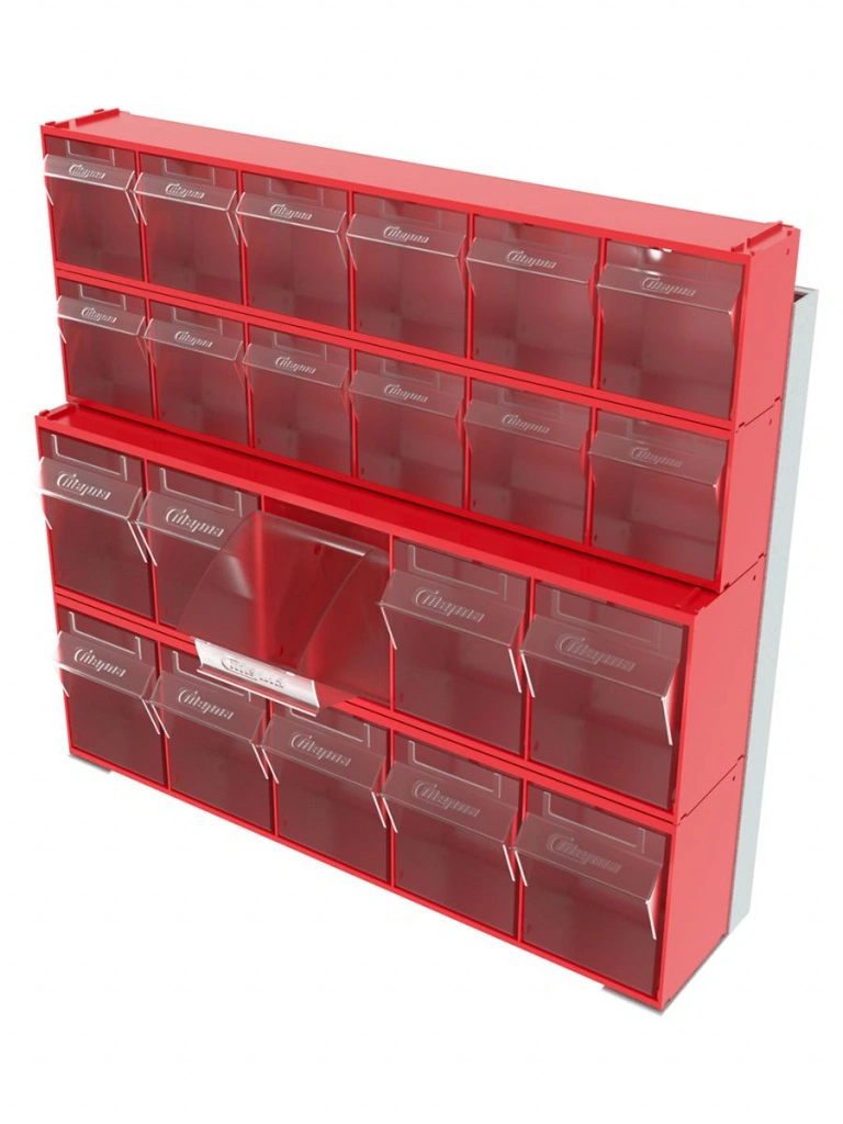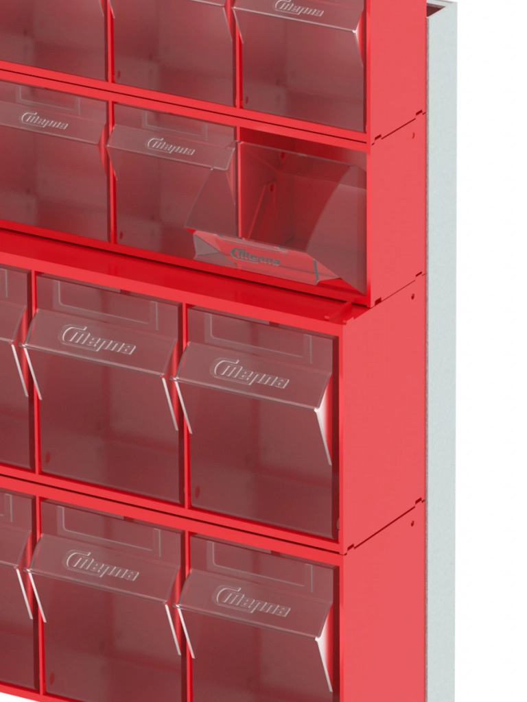 Стойка настенная/настольная Стелла-техник 401-00-02-02 (610х150х500) представляет собой удобную систему хранения, которая подойдет для выставочных залов, магазинов, офисов, складов. Основание можно установить на стол или закрепить на стену, привернув его анкерными болтами или саморезами (в комплект не входят). В комплект стойки 401-00-02-02 входит: Рама FOX (610х150х500) V401 - 1 шт.; Короб откидной Стелла-техник F-600-6 , 600х96х112мм, 6 ячеек, красный, прозрачный – 2 шт.; Короб откидной Стелла-техник F-600-5 , 600х140х168мм, 5 ячеек, красный, прозрачный – 2 шт.; Упаковка. Преимущества стойки: Металлическое основание; Значительная устойчивость; Хорошая вместимость; Длительный срок службы.