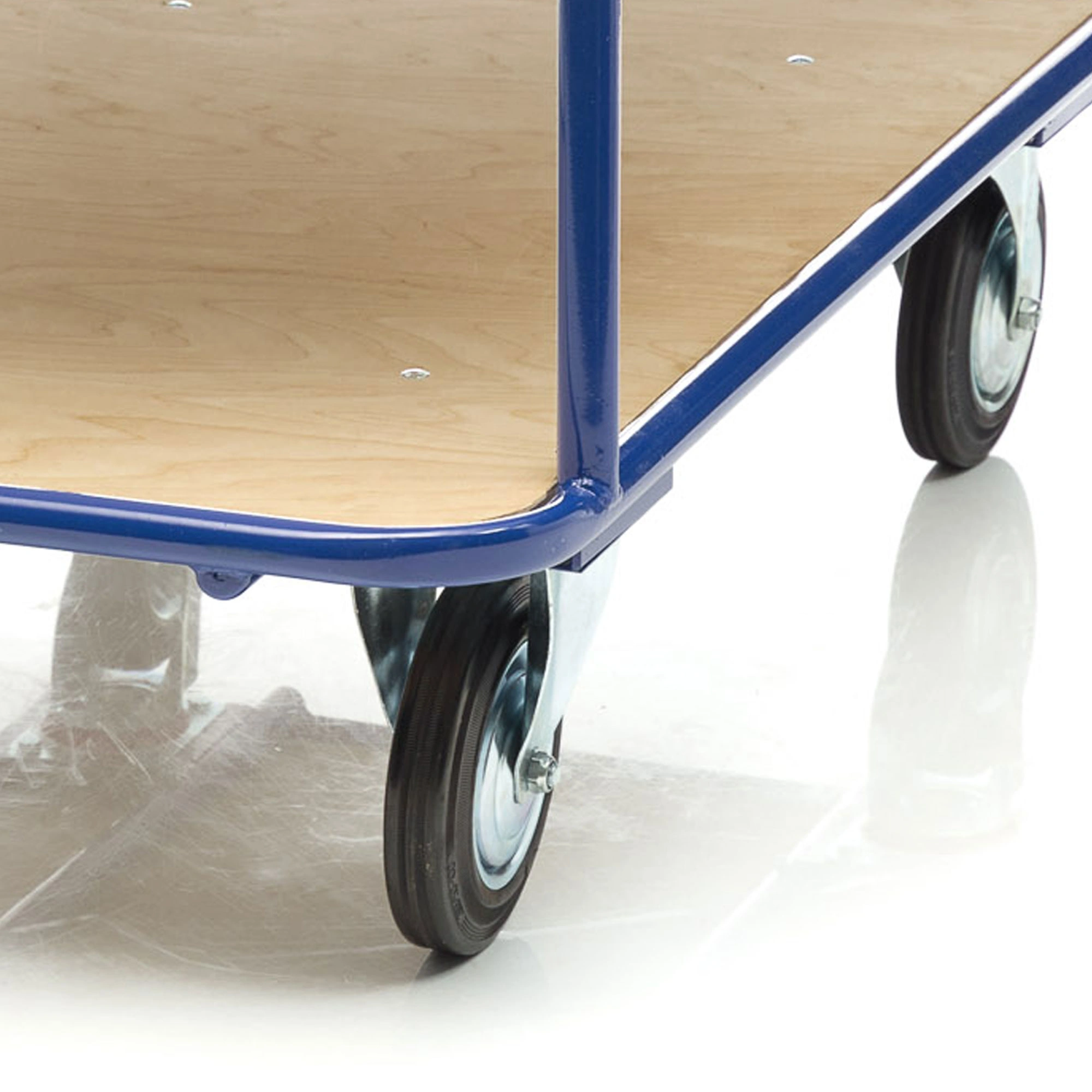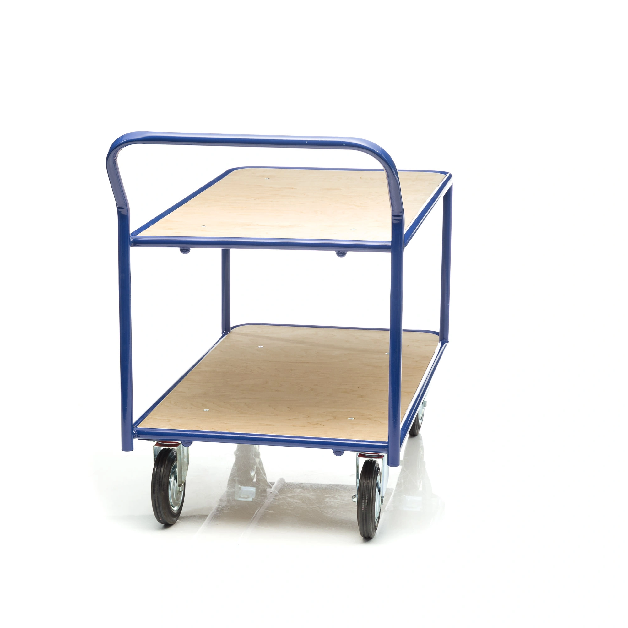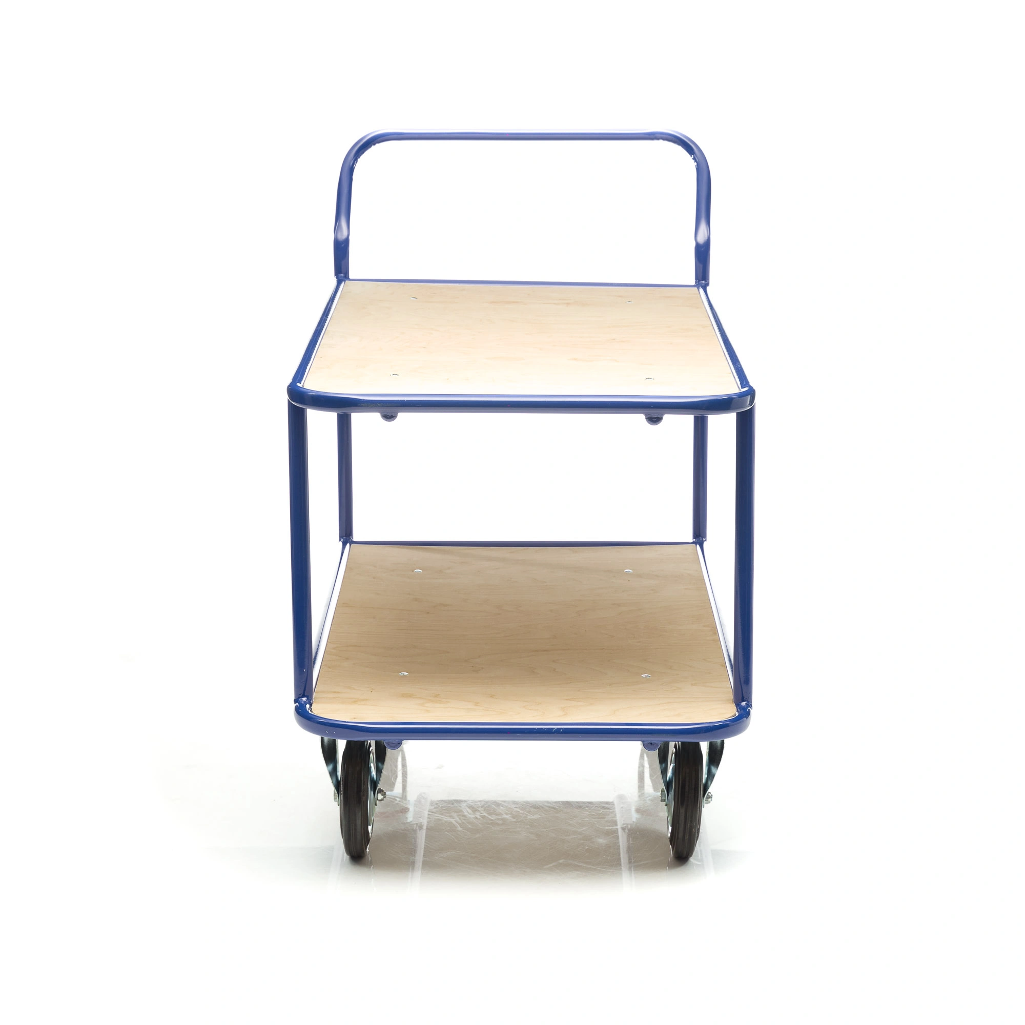 Тележка 2-х ярусная с фанерными платформами КП-2-160-К – удобная модель с удлиненными «полками» для перевозки грузов весом до 400 кг. Система ярусов облегчает транспортировку и сортировку малогабаритных предметов. Фанерные листы снижают уровень шума и отличаются долговечностью. Тележка с двумя платформами повышает эффективность труда и расширяет функционал рабочих задач.