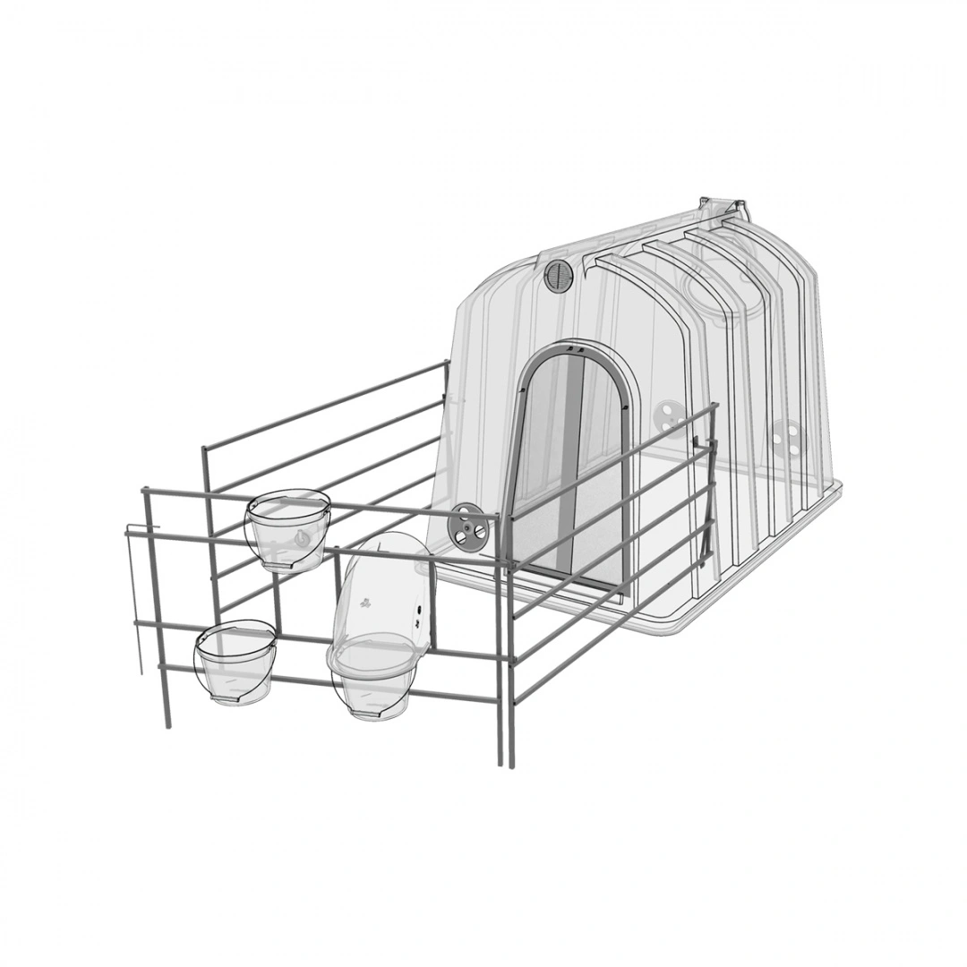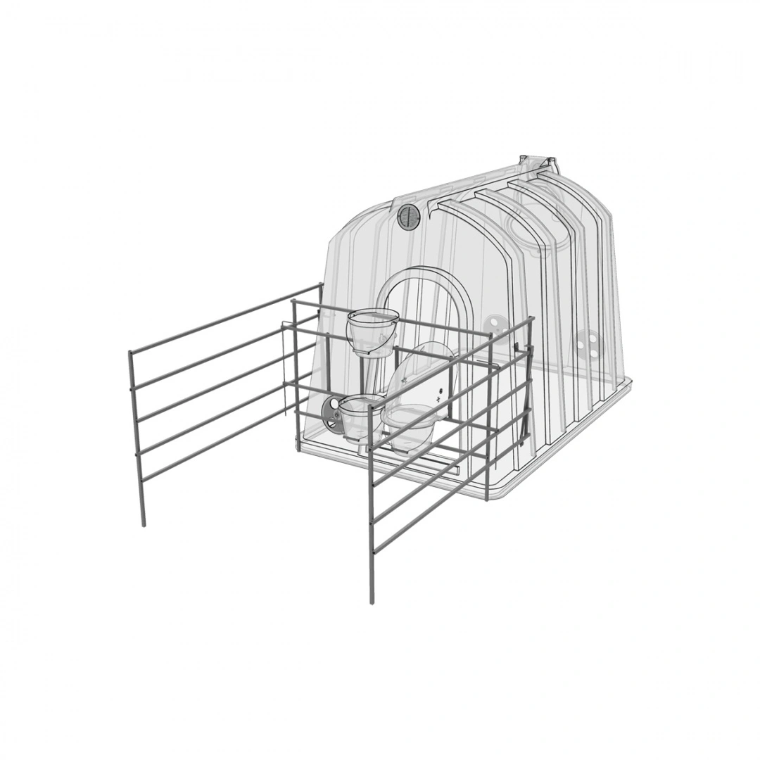 Рекомендуем для эксплуатации с индивидуальным большим домиком для телят, фермерскими ведрами для воды и корма, защитным колпаком, ведром для выпойки и пологом.
